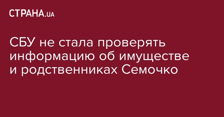 СБУ не стала проверять информацию об имуществе и родственниках Семочко