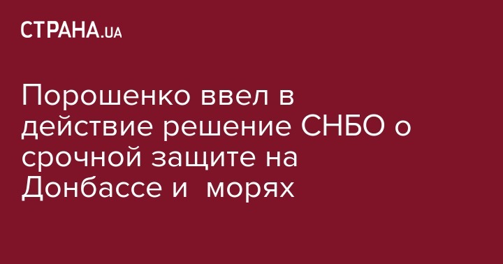 Президент Петр Порошенко ввел в действие решение Совета национальной безопасности и обороны Украины от 12 октября 2018 "О неотложных мерах по защите национальных интересов на Юге и Востоке Украины, в Черном и Азовском морях и Керченском проливе". Об этом говорится в указе президента №320 от 12 октября.