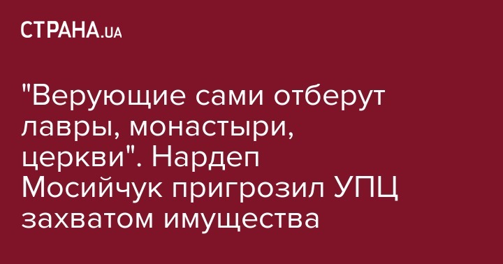 "Верующие сами отберут лавры, монастыри, церкви". Нардеп Мосийчук пригрозил УПЦ захватом имущества