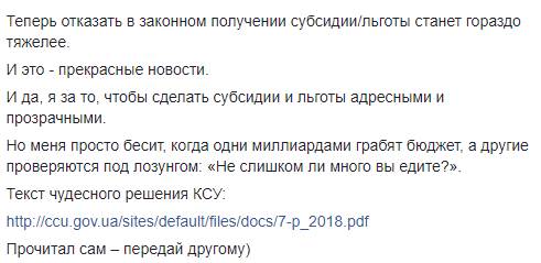 "Конституционный суд своим решением признал неконституционным право Министерства финансов получать информацию, содержащую ваши персональные данные. Скажем честно, такую информацию Минфин стремился получать без вашего согласия чтобы усомниться в ваших правах на получение субсидий, льгот, иных выплат. Усомниться и лишить вас законных прав - аннулировать получение льгот и субсидий. И назывался этот тотальный контроль – верификацей/проверкой социальных выплат. Суд посчитал это неконституционным и неоправданным вмешательством в право человека на частную и семейную жизнь", - написала она.