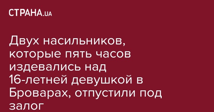 Броварской межрайонный суд освободил мужчин, которые в августе на протяжении пяти часов насиловали 16-летнюю девушку, под залог в 140 тысяч гривен. Такое решение вынесла судья Билык. Об этом сообщает в Facebook пользователь сети Людмила Николаевна.