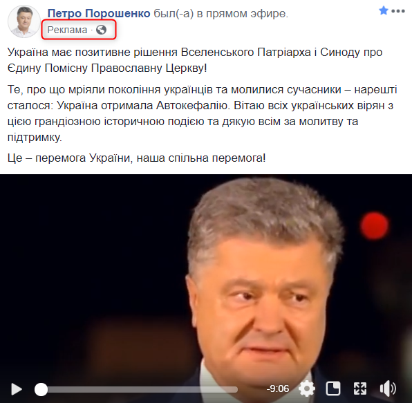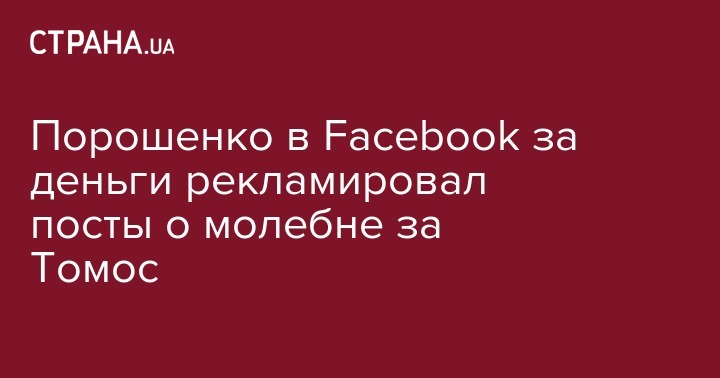 Порошенко в Facebook за деньги рекламировал посты о молебне за Томос