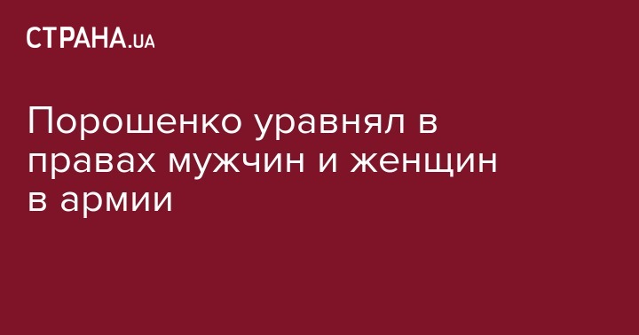 Президент Украины Петр Порошенко подписал закон, который уравнял возможности мужчин и женщин в армии. Об этом передает "Гордон".