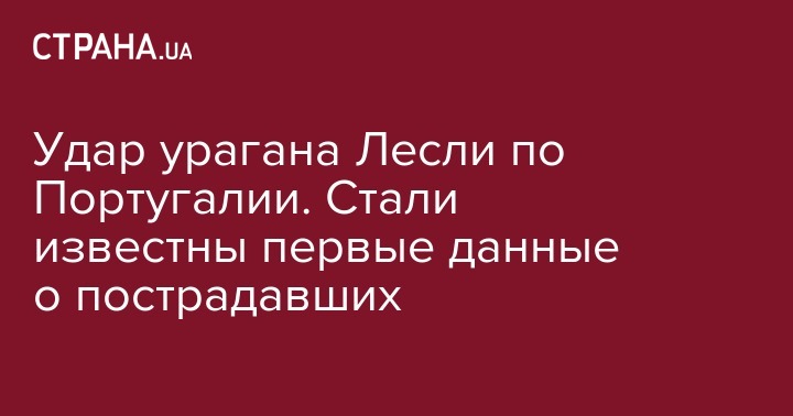 В Португалии в результате урагана "Лесли" пострадали 27 человек. Сообщается, что все пострадавшие получили травмы, не угрожающие их жизни. Об этом передает УНН.