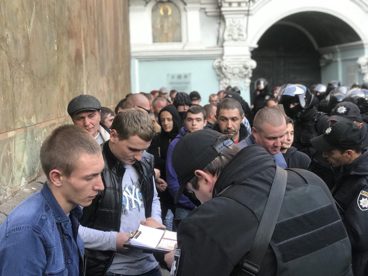 "Группа из 66 человек была отправлена в районные отделения полиции, где у них проверят документы и отправят домой. Остальные до сих пор находятся перед входом в лавру, их заблокировали бойцы полка полиции особого назначения", – сообщает издание.