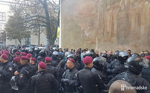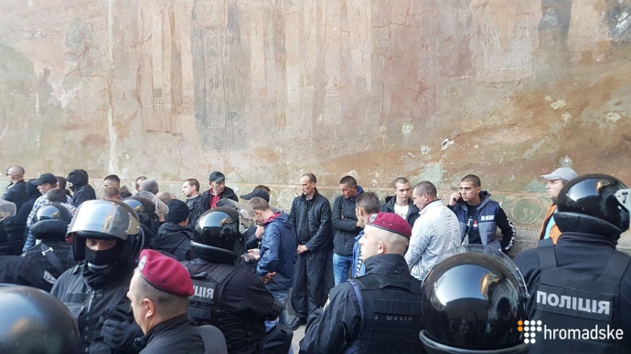 В Киеве полиция доставила в участок около 100 человек, находившихся возле Киево-Печерской Лавры. Полицейские занялись установлением их личных данных.
