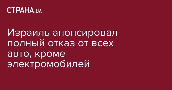 Израиль анонсировал полный отказ от всех авто, кроме электромобилей