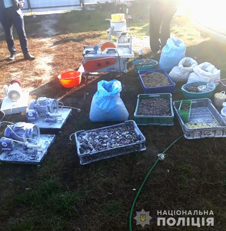 Выяснилось, что незаконной деятельностью занимался 41-летний мужчин. Цех был прямо у него дома. Во время обыска полицейские нашли там 100 кг янтаря различных фракций, 8 станков для его обработки, две мотопомпы заводского производства и черновые записи. Общая стоимость перечисленного - 1,4 млн гривен. Все это было изъято.