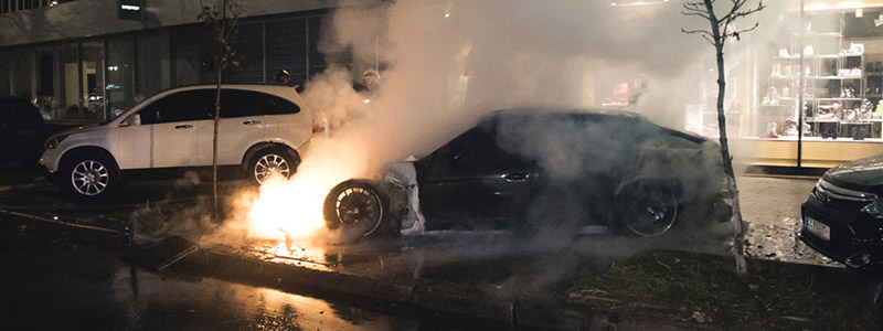 В центре Киева сгорел Porsche. Рядом стоящие машины расплавились