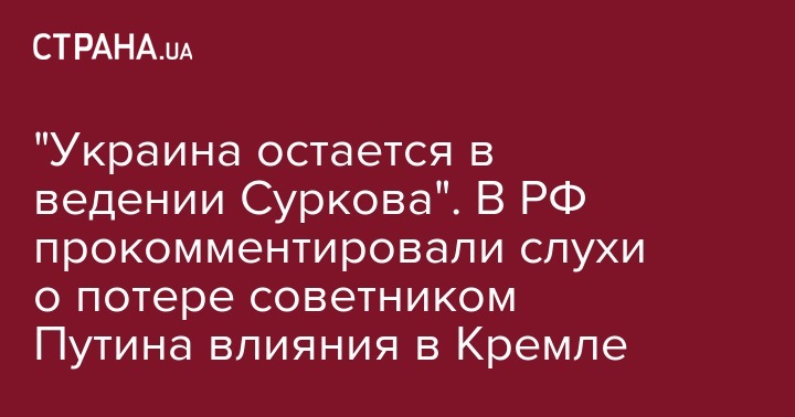Украина остается в ведении помощника президента России, курирующего вопросы "ЛДНР" Владислава Суркова, а информация о потере им влияния в Кремле не соответствует действительности.