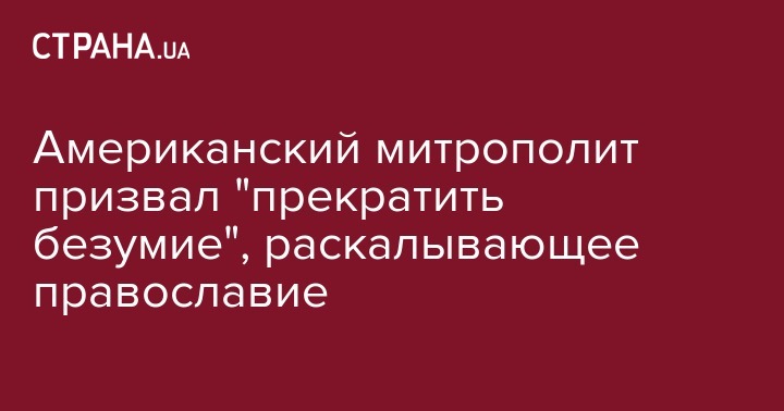 Предстоятель православной церкви в США митрополит Иона (Паффхаузен) призвал ответственные за раскол православия стороны "покаяться и прекратить безумие". Об этом предстоятель сообщил в интервью РИА "Новости".