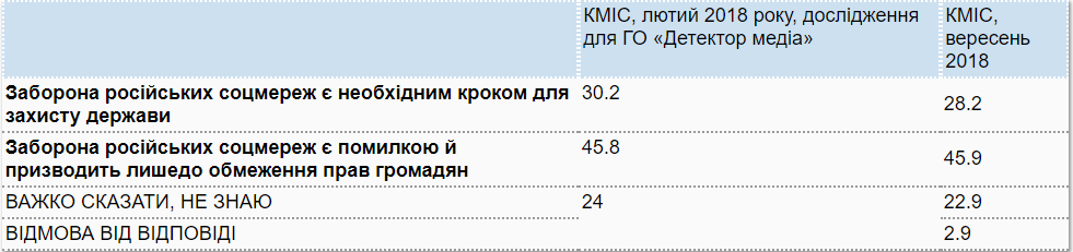 С запретом российских соцсетей картина схожая: 46% его не поддерживают, а 28% выступают за продолжение запрета. Их количество в сравнении с февралем упало на два процента.