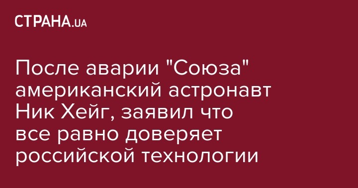 После аварии "Союза" американский астронавт Ник Хейг, заявил что все равно доверяет российской технологии