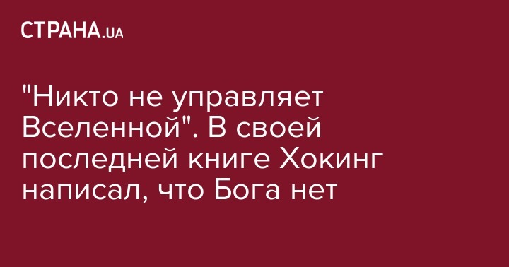 Легендарный физик-теоретик Стивен Хокинг не верил в существование Бога, который управляет Вселенной. Об этом он написал в своей последней книге "Краткие ответы на большие вопросы", передает CNN.