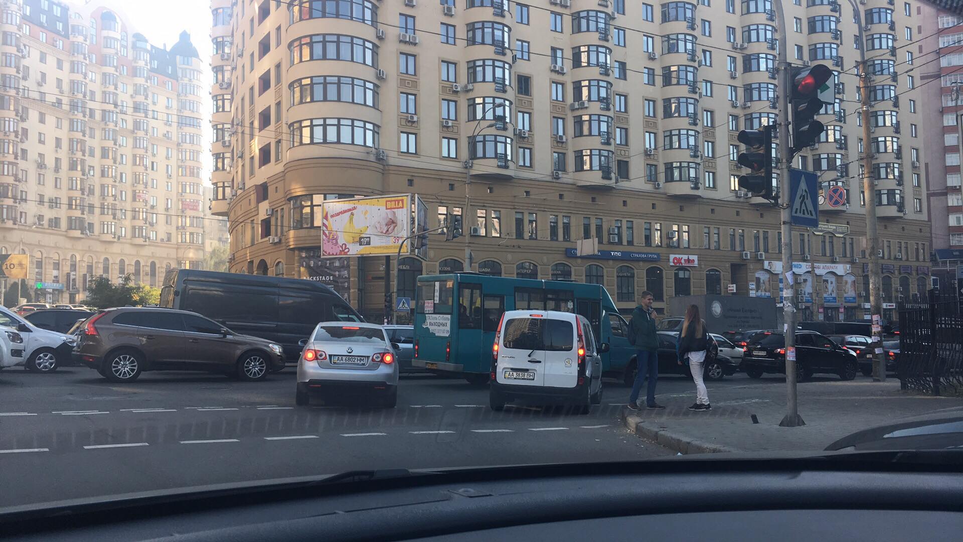 Утром, 17 октября, в центре Киева образовались огромные пробки. Машины стоят на центральных улицах, автомобилисты стараются объехать заторы через дворы.