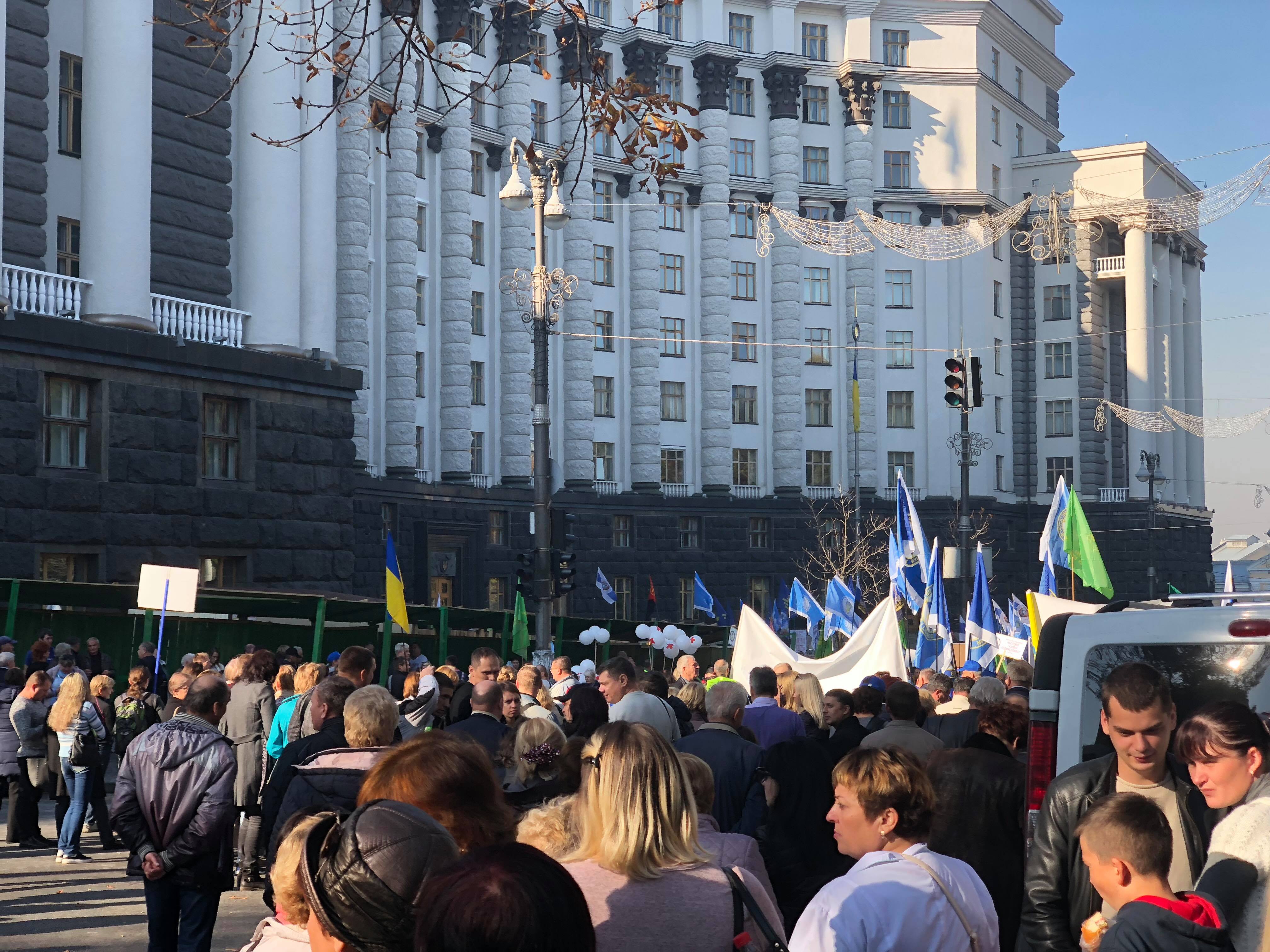 Как сообщает корреспондент "Страны" с места событий, к митингу присоединилось около 3 тысяч людей. Они прошли по центру столицы и остановились у здания Кабинета министров Украины.