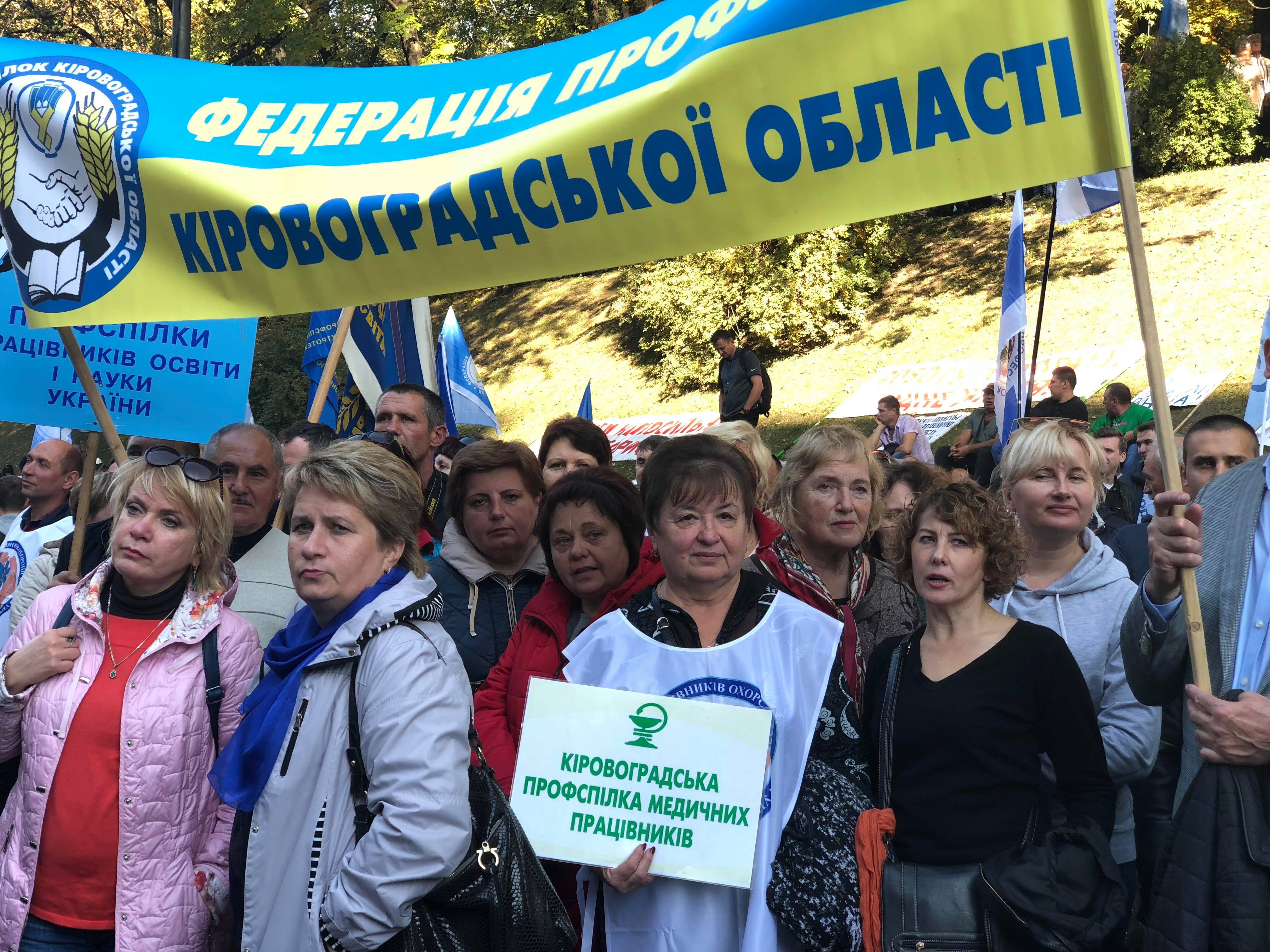 В среду, 17 октября, в центре Киева проходит Всеукраинская профсоюзная акция протеста, приуроченная к Всемирному дню действий за достойный труд.