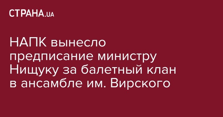 НАПК вынесло предписание министру Нищуку за балетный клан в ансамбле им. Вирского