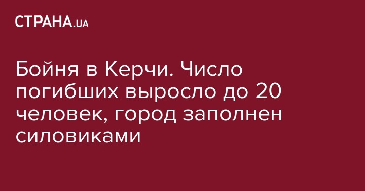 В среду днем студент Керченского политехнического колледжа открыл стрельбу и устроил взрыв в учебном заведении, после чего покончил с собой. Кроме погибших порядка 50 человек были госпитализированы, 10 из них находятся в тяжелом состоянии в реанимации. Уголовное дело, возбужденное по статье "Теракт", было позже переквалифицировано на статью "Убийство". В Крыму с четверга, 18 октября, объявлен трехдневный траур.