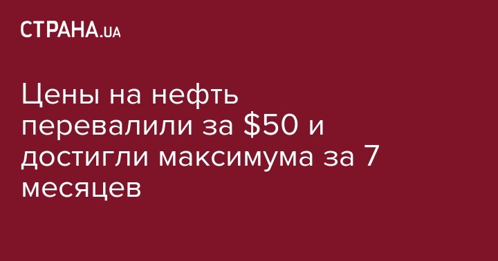 Цены на нефть перевалили за $50 и достигли максимума за 7 месяцев