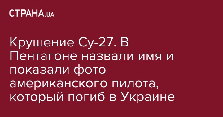 Крушение Су-27. В Пентагоне назвали имя и показали фото американского пилота, который погиб в Украине