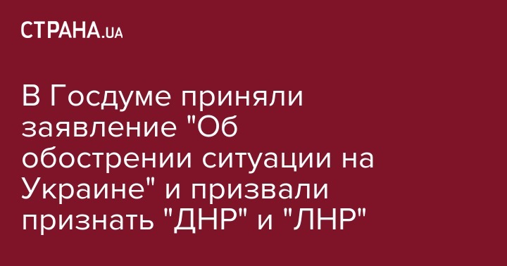 Отметим также, что выступающие от всех фракций на пленарном заседании выступили за признание Россией так называемых "ДНР" и "ЛНР", хотя в сам принятый документ этот момент не попал.