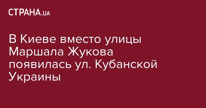 В Киеве вместо улицы Маршала Жукова появилась ул. Кубанской Украины