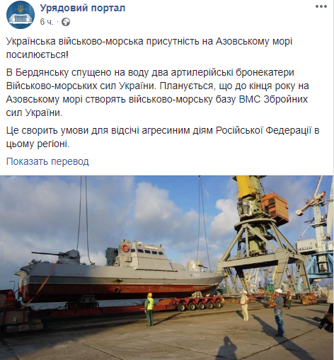 Одновременно начали разрабатывать морскую доктрину и готовить иски против РФ в международные суды. И вести переброску бронекатеров из Одессы в Бердянск. Именно в этом городе ВМС собираются до конца года создать военную базу.