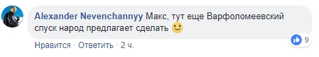 В комментариях к записи также предложили переименовать Андреевский спуск в Варфоломеевский.