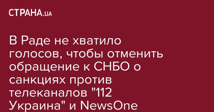 Верховная Рада не хватило голосов, чтоб принять проект постановления № 9157-П об отмене решения призвать Совет безопасности ввести санкции против телеканалов "112 Украина" и NewsOne. Таким образом депутаты подтвердили обращение в СНБО, пишет "112 Украина".