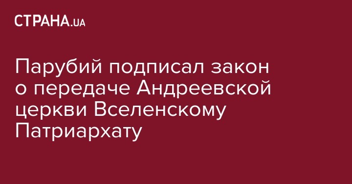 Глава Верховной Рады Андрей Парубий подписал закон, согласно которому предусматривается передача Андреевской церкви в Киеве в пользование Вселенскому Патриархату. Об этом говорится на сайте парламента в информации о состоянии документа, где значится, что он передан на подпись президенту.