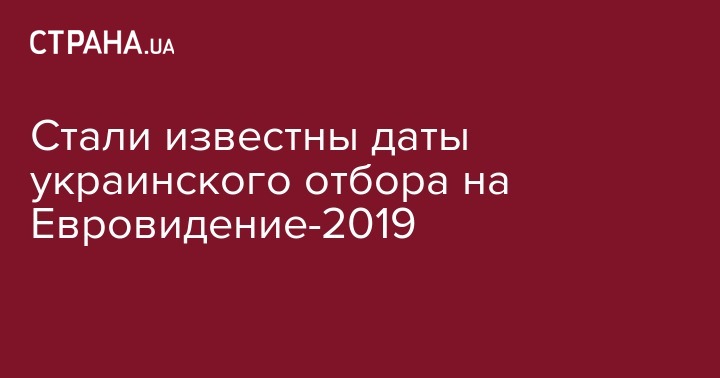 Представителя от Украины на песенный конкурс Евровидение-2019, который пройдет в мае 2019 года в Тель-Авиве (Израиль), будут выбирать с 9 по 23 февраля. Об этом говорится на официальной странице Евровидения в Украине в Instagram.