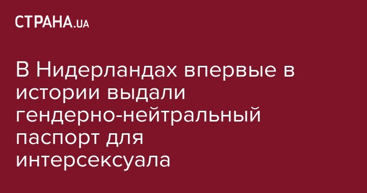 В Нидерландах впервые в истории выдали гендерно-нейтральный паспорт. Его получила женщина, которая родилась мужчиной, но в 2001 году сменила свой пол на женский и считает себя интерсексуалом, пишет BBC.