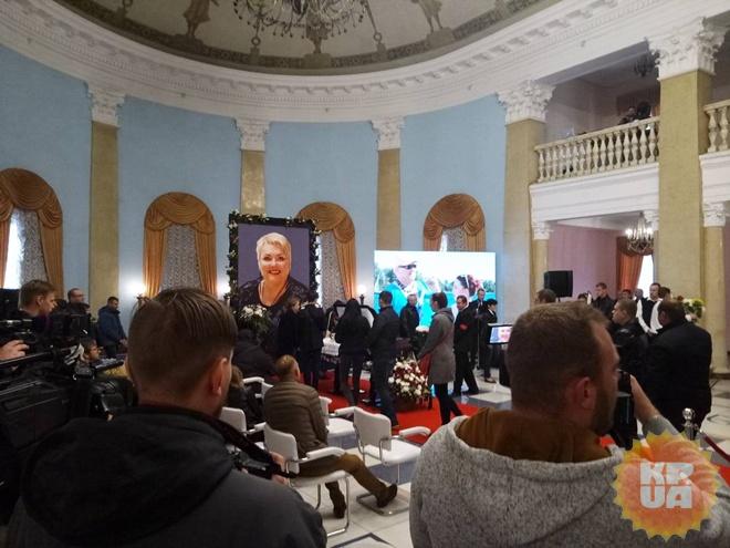 Церемония прошла в помещении МЦКИ "Октябрьский Дворец" по адресу Аллея Героев Небесной Сотни, 1. Простится с артисткой пришло множество людей, от подростков, до пожилых людей. Особенно много слез пролили женщины, которые горевали по погибшей актрисе. К гробу возложили множество цветов.