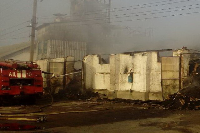"Пожар возник в складском здании с семенами подсолнечника и быстро перекинулся на соседний склад с зерном пшеницы", – сказано в сообщении.
