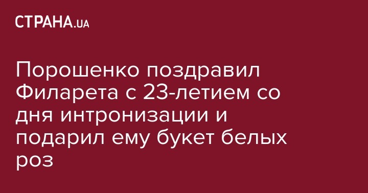 Президент Украины Петр Порошенко поздравил патриарха УПЦ КП Филарета с 23 годовщиной его интронизации, сообщает пресс-служба администрации президента.