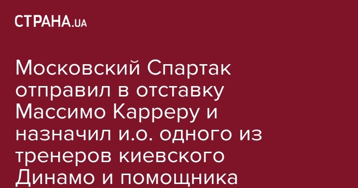В понедельник, 22 октября, московский "Спартак" отправил в отставку главного тренера Массимо Карреру. Исполняющим обязанности стал его помощник Рауль Рианчо (он раньше работал в киевском Динамо, где был ассистентом Сергея Реброва, и в сборной Украине, где помогал Андрею Шевченко - Прим. Ред.).