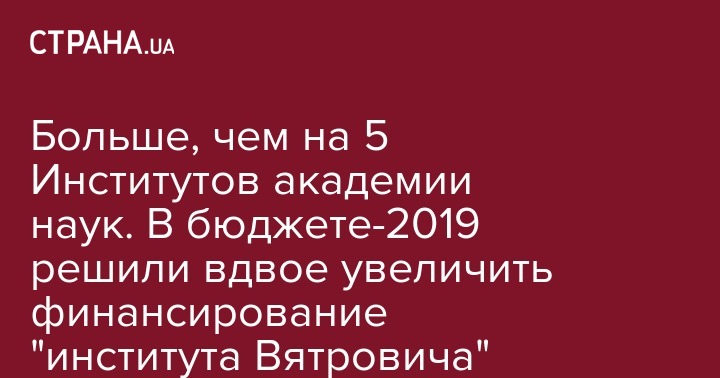 Больше, чем на 5 Институтов академии наук. В бюджете-2019 решили вдвое увеличить финансирование "института Вятровича"