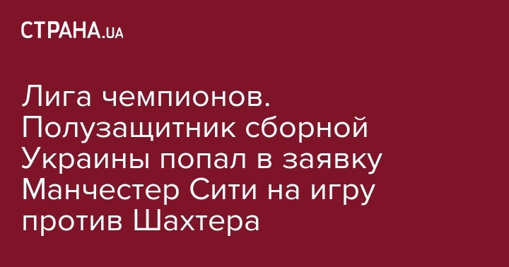 Лига чемпионов. Полузащитник сборной Украины попал в заявку Манчестер Сити на игру против Шахтера