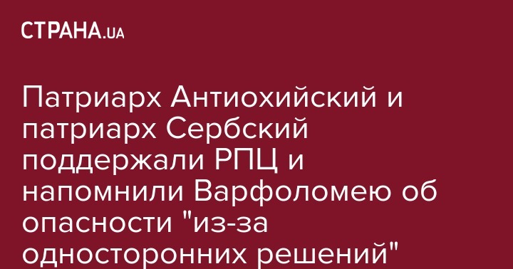 В связи с этим "Сербская и Антиохийская Церкви выражают серьезную обеспокоенность в связи с опасностью отчуждения и передела, которая в настоящее время нависла над поместными автокефальными церквами из-за односторонних решений, касающихся основ консенсуса и братских отношений между Церквами и ставит под угрозу единство их союза и влияние свидетельства Православной Церкви в сегодняшнем мире".