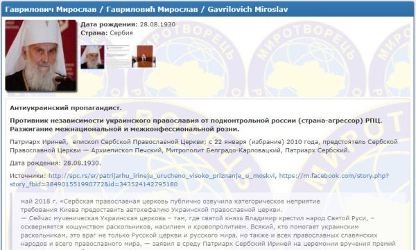 Также владыка был занесен на террористический сайт "Миротворец", созданный замминистра Украины по вопросам ЛДНР и курируемый советником министра МВД.