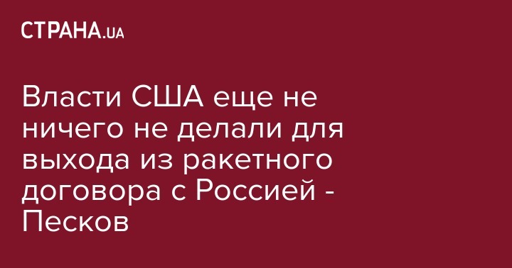 В самом документе, подчеркнул он, прописана процедура выхода из этого соглашения. "Пока никаких действий, прописанных в тексте, направленных на выход из этого документа, США не предпринимали", - сказал Песков, напомнив, что де-юре выход из ДРСМД занимает полгода.