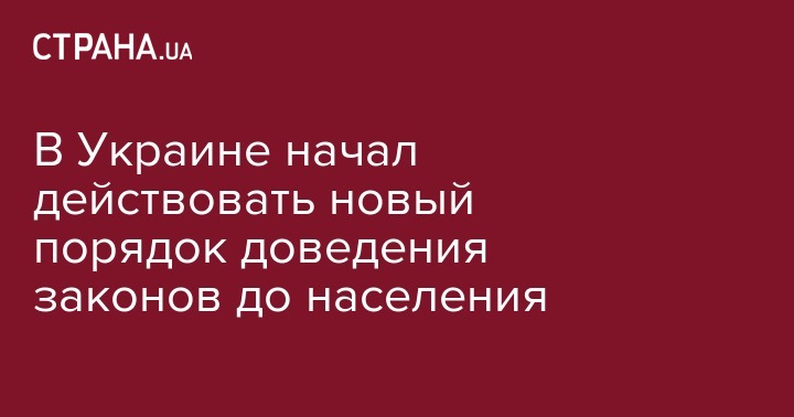 Доведение до сведения населения законов Украины и других нормативно-правовых актов теперь может осуществляться путем официального обнародования (опубликования) в соответствии с законом государственными печатными медиа и официальными печатными изданиями (официальными изданиями), а также путем освещения аудиовизуальными СМИ, размещения на официальных сайтах органов государственной власти, местного самоуправления и размещения иным способом, определенным законом.