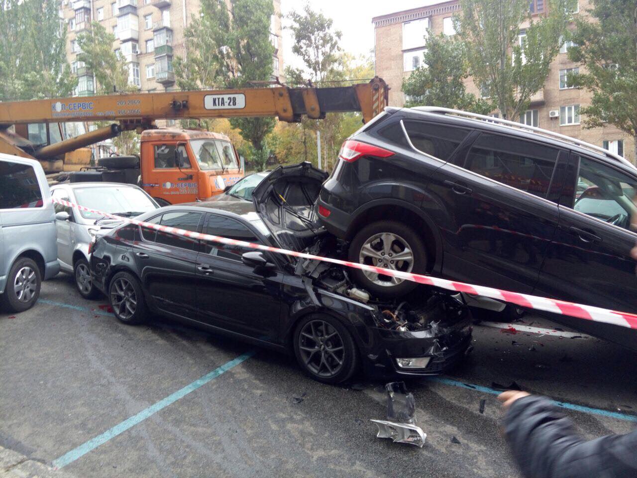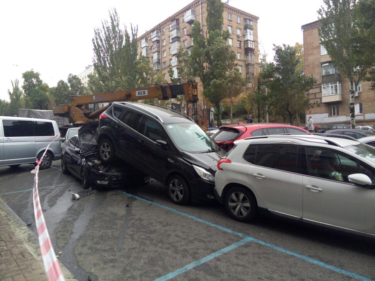 Инцидент произошел около 09:00 возле БЦ Парус. По данным полиции Киева, столкновение спровоцировал автокран КамАЗ с нерабочими тормозами, который на скорости спускался вниз. О неисправности сообщил сам водитель транспортного средства. Полиция проверяет эту версию. По последним данным, в результате ДТП пострадали 18 легковых автомобилей и грузовик.
