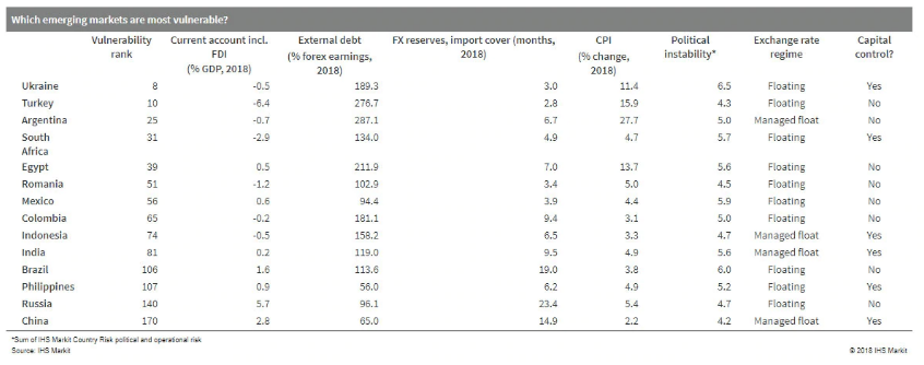 Рейтинг уязвимости экономики развивающихся стран. Скриншот: ihsmarkit.com
