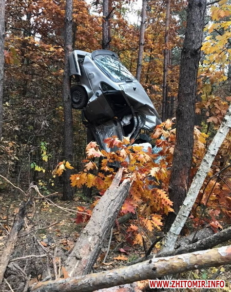 20 октября в Житомире произошло ДТП, в результате которого легковушка буквально повисла на дереве. Об этом сообщает Житомир.info.