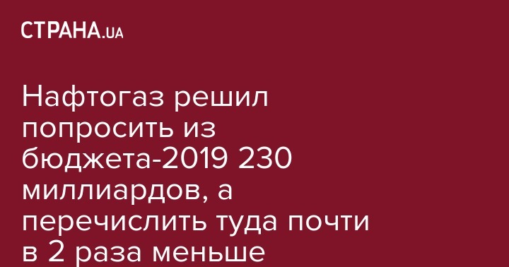 Нафтогаз решил попросить из бюджета-2019 230 миллиардов, а перечислить туда почти в 2 раза меньше