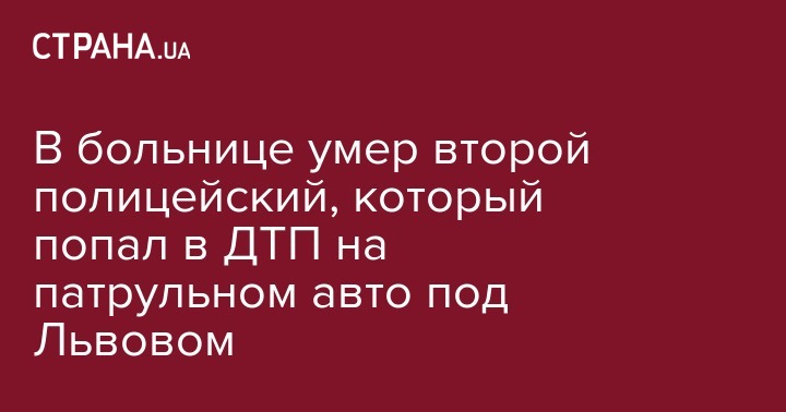 Госпитализированный 20 октября в результате ДТП на автодороге "Тернополь-Львов-Рава-Русская" 31-летний лейтенант полиции скончался в больнице в ночь на среду, сообщила пресс-служба Национальной полиции Украины.