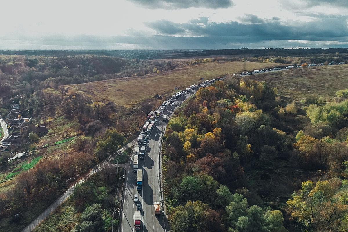 Две полосы движения из четырех стали не проездными. С двух сторон аварии образовалась огромная пробка. Машины стояли на улице Академика Заболотного в районе Пирогово от улицы Метрологической к Столичному шоссе. Из-за невнимательности водителей рядом произошло еще несколько мелких аварий.