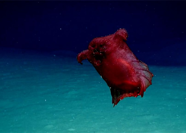 Морские биологи впервые сняли на видео удивительное морское создание рода Enypniastes (Голотурия или морской огурец), которого прозвали "безголовым куриным монстром" или "испанским танцором". Об этом сообщает The New-York Times.